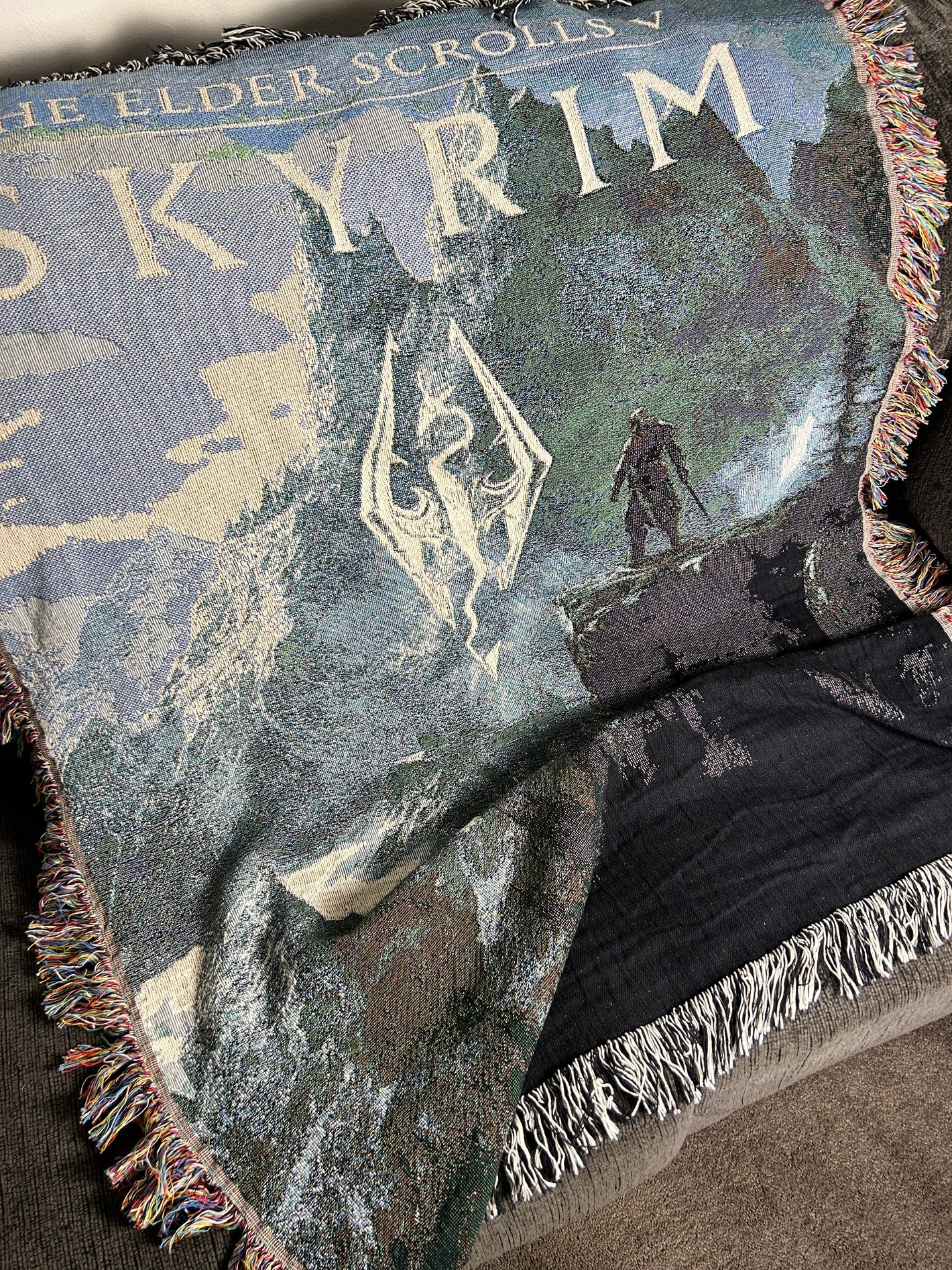 I bought this blanket as a gift for myself, and I’m honestly surprised at how nice it feels. The material is super soft without being heavy, which makes it perfect to curl up in while gaming or watching TV. The Skyrim design looks sharp and doesn’t fade after washing, which is a big plus. It feels like the kind of blanket you keep reaching for every evening